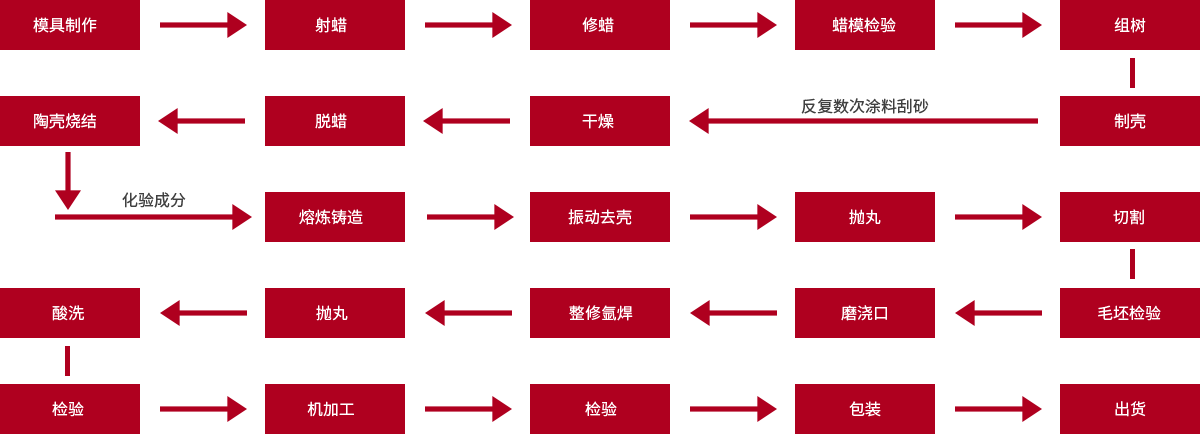采用的硅溶膠熔模精密鑄造工藝,是一種少切削或無切削的鑄造工藝,是鑄造行業(yè)中的一項優(yōu)異的工藝技術(shù),它比國內(nèi)大多數(shù)廠家采用的水玻璃工藝、復合工藝更先進,所鑄造的鑄件表面更加光滑平整,其應(yīng)用非常廣泛。